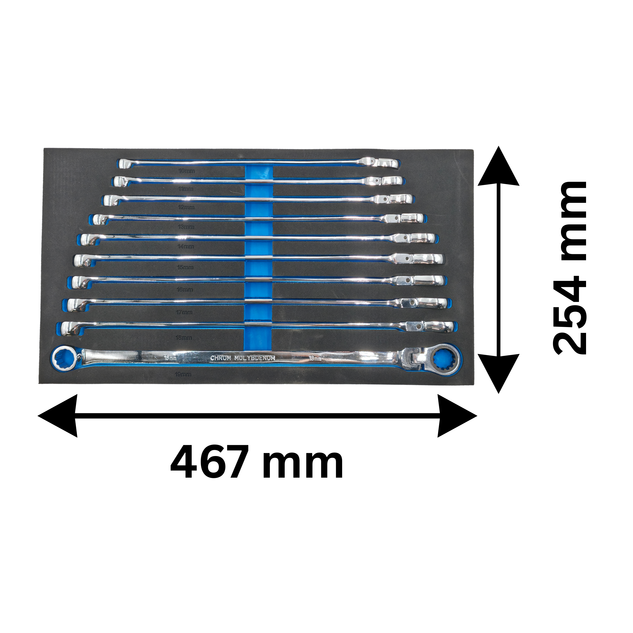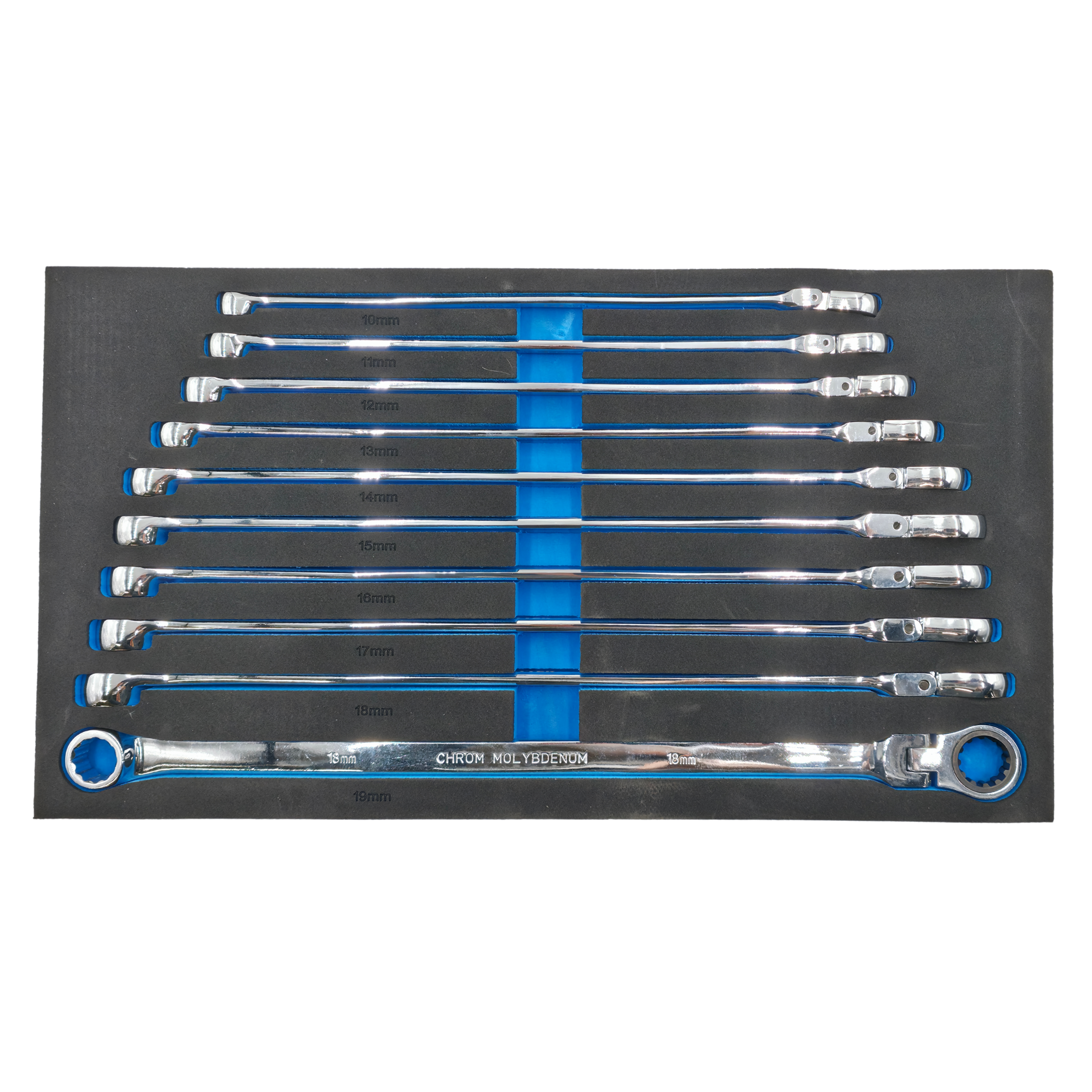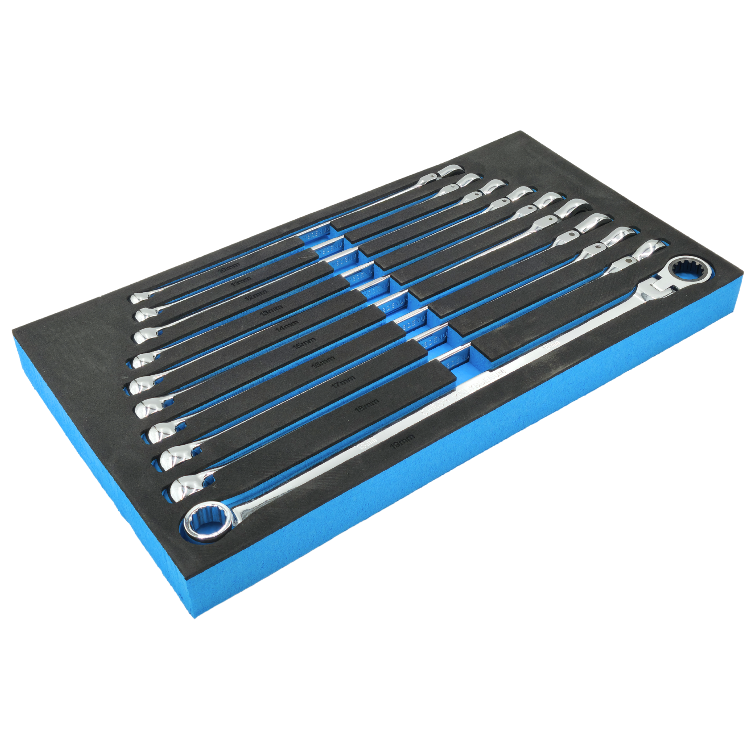 Startseite » Werkzeugwagen » Einlagen von A-Z » Gelenk-Ratschen-Schlüsselsatz 10-tlg. metrisch lange Ausführung