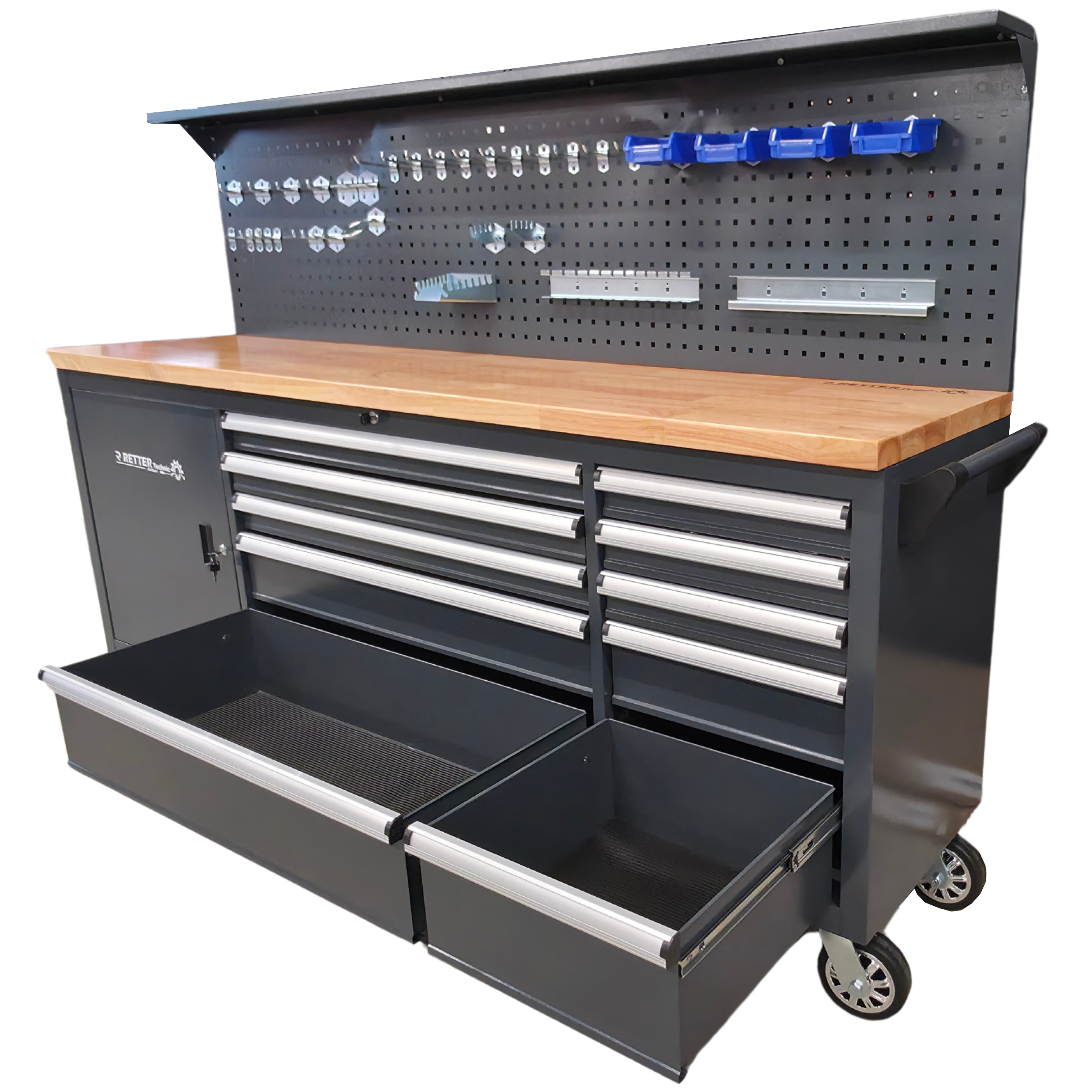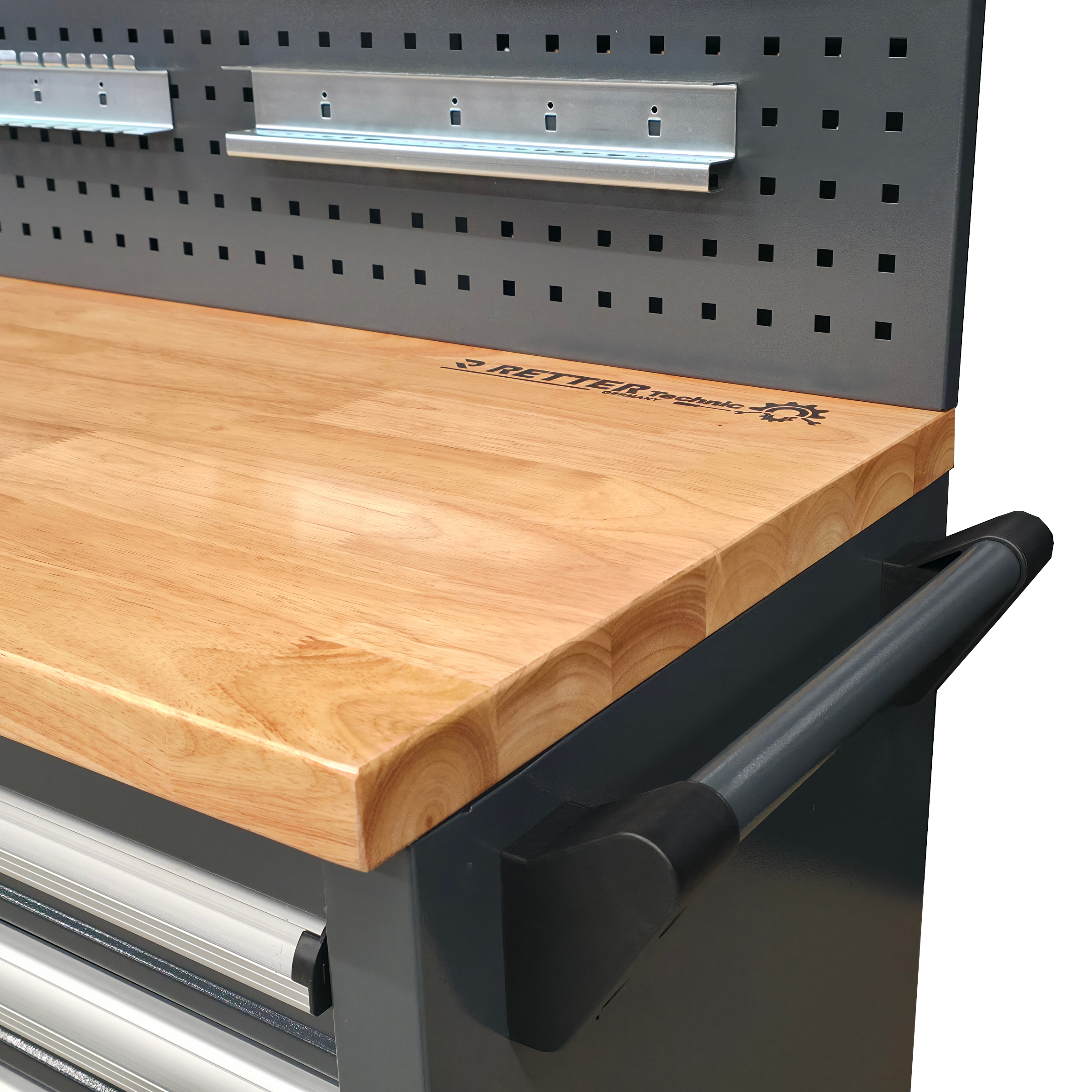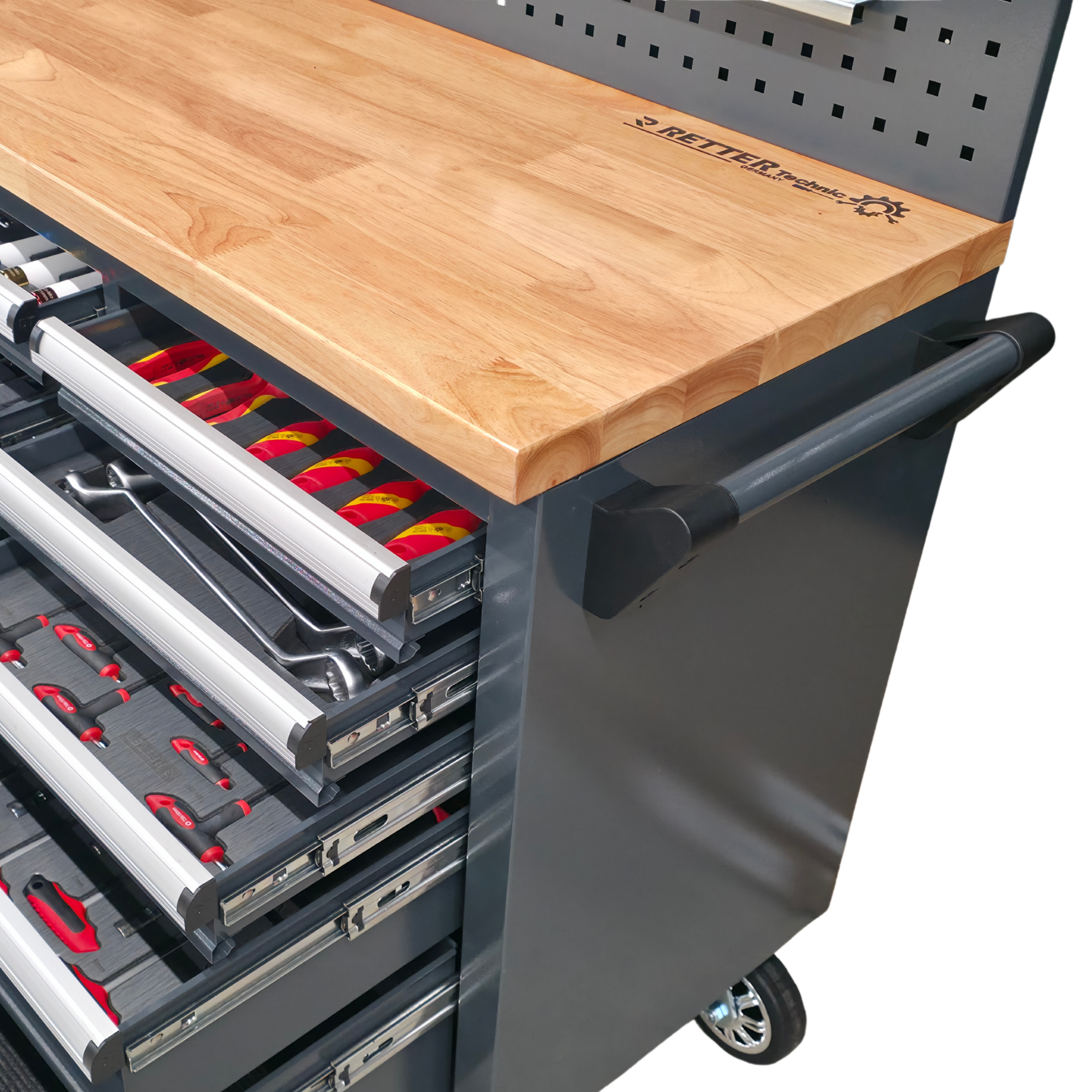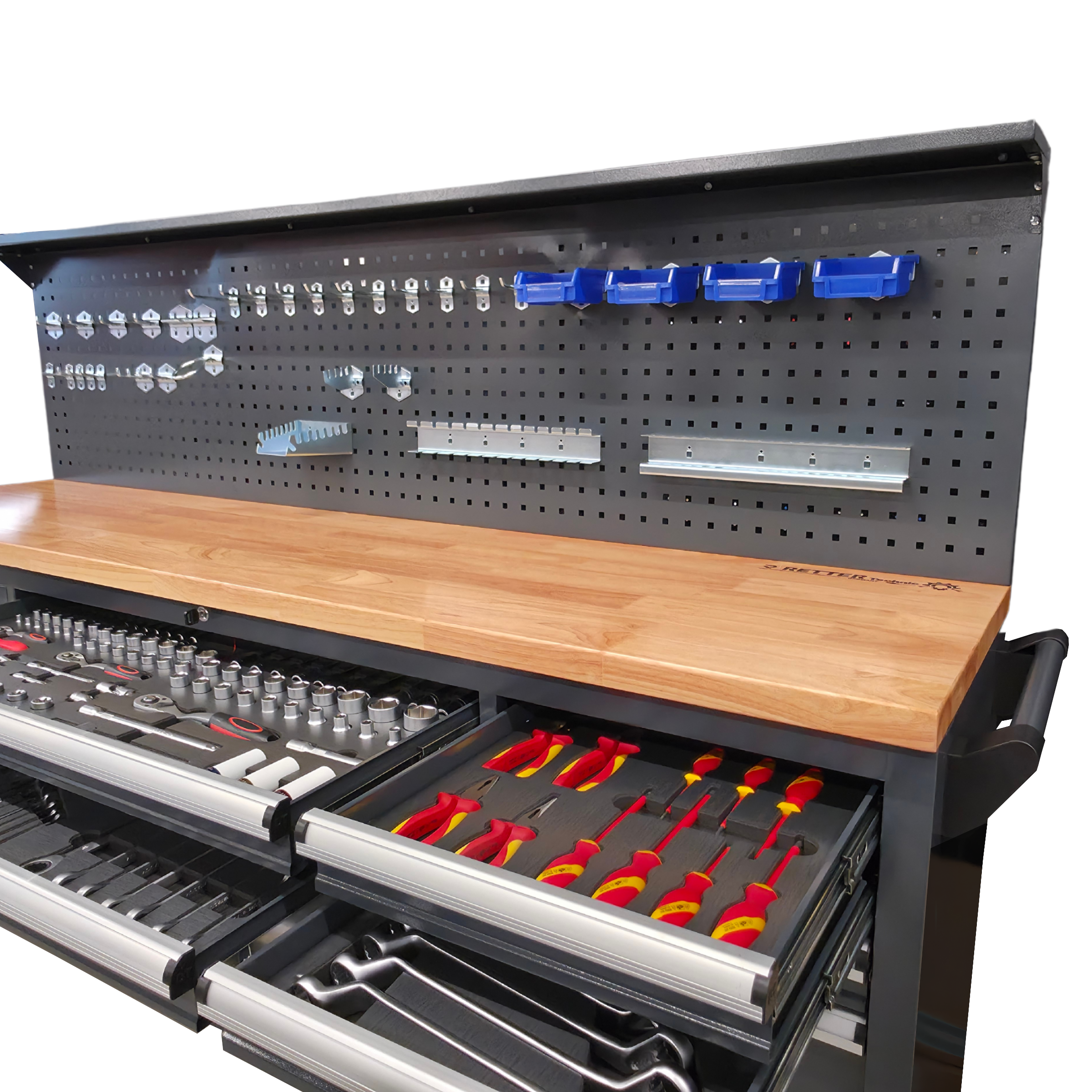 RETTER steht für Qualität, Garantie und Leistung zu einem vernünftigen Preis. Unsere Werkstattlösungen bringen nicht nur Ordnung, sondern auch Effizienz in Ihre Arbeitsumgebung. Die pulverbeschichtete Oberfläche verleiht Ihrem Raum Professionalität, während die clever gestalteten Schubladen und Ablageflächen alles griffbereit halten.