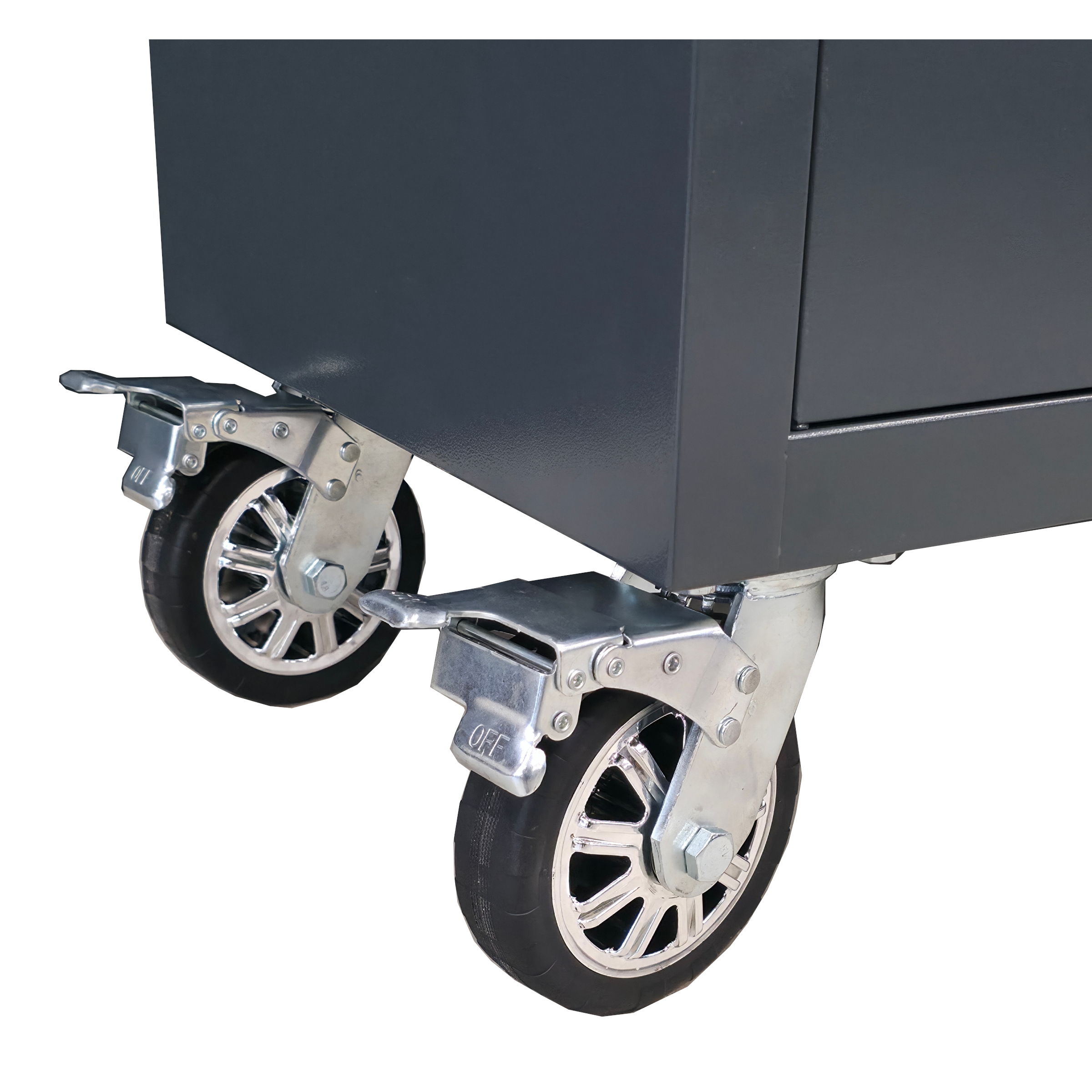 - Robuste Schwerlast-Kugellagerrollen, zwei mit Bremsen