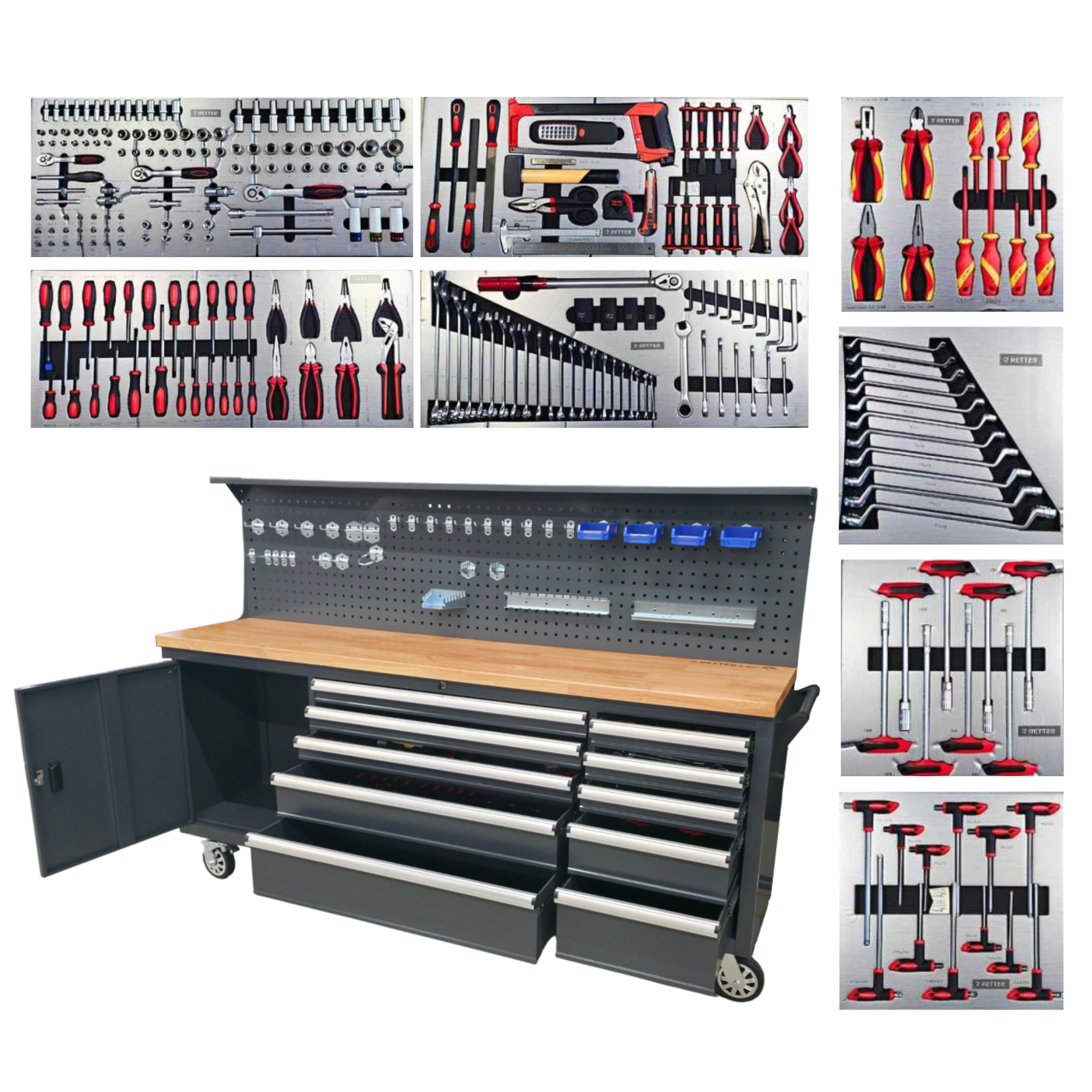 Startseite » Werkzeugwagen » Werkstattwagen » RETTER RS2 Werkstattwagen Werkbank mit 10 Schubladen und Türfach inkl 260 teiligem Werkzeug