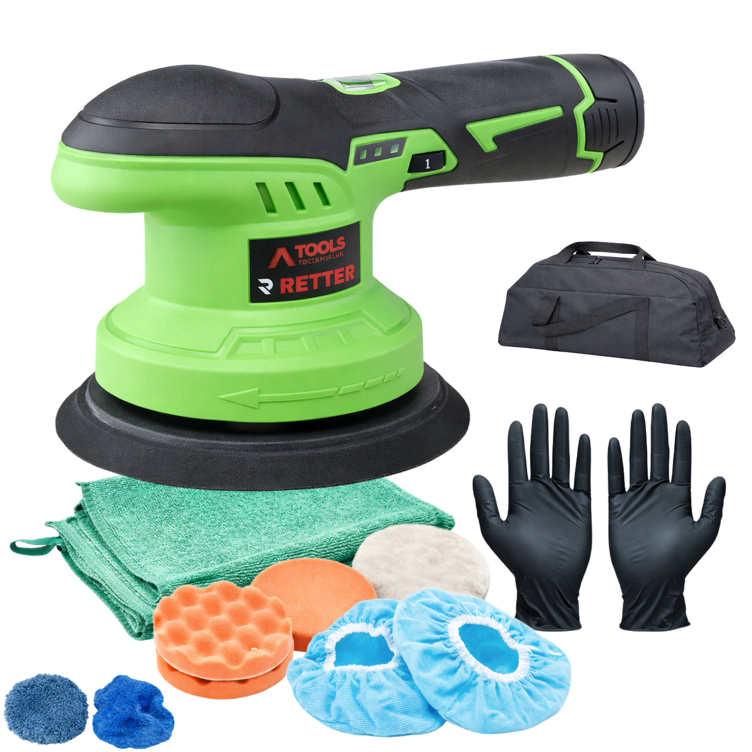 Startseite » Akku | Werkzeuge » RETTER | Akkugeräte » RETTER 12V Akku Exzenter Poliermaschine 150mm 6-Stufen inkl. Zubehör Set