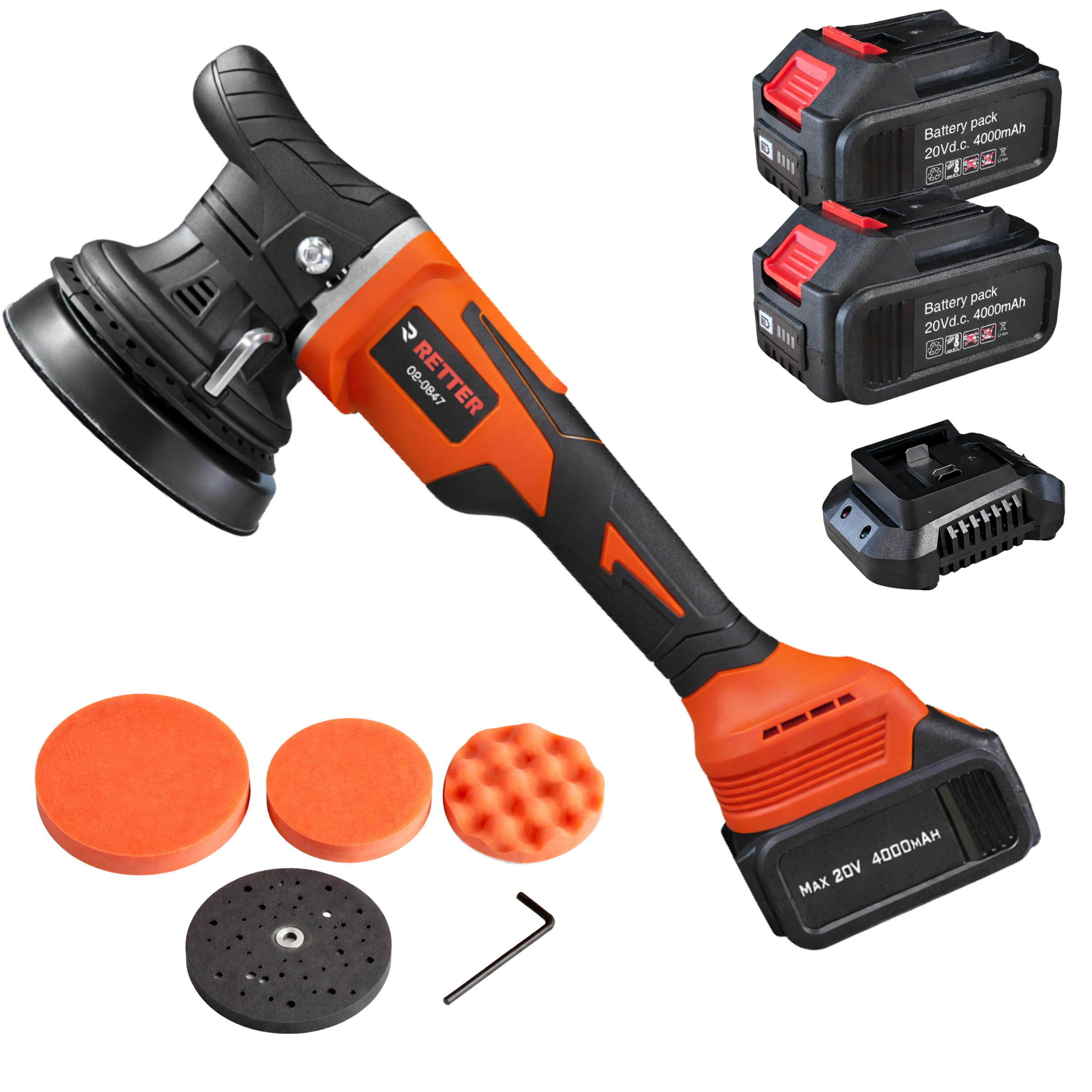 Startseite » Akku | Werkzeuge » RETTER | Akkugeräte » RETTER 20V Akku Exzenter Poliermaschine 125–150mm 15mm Hub inkl. 2 Akkus