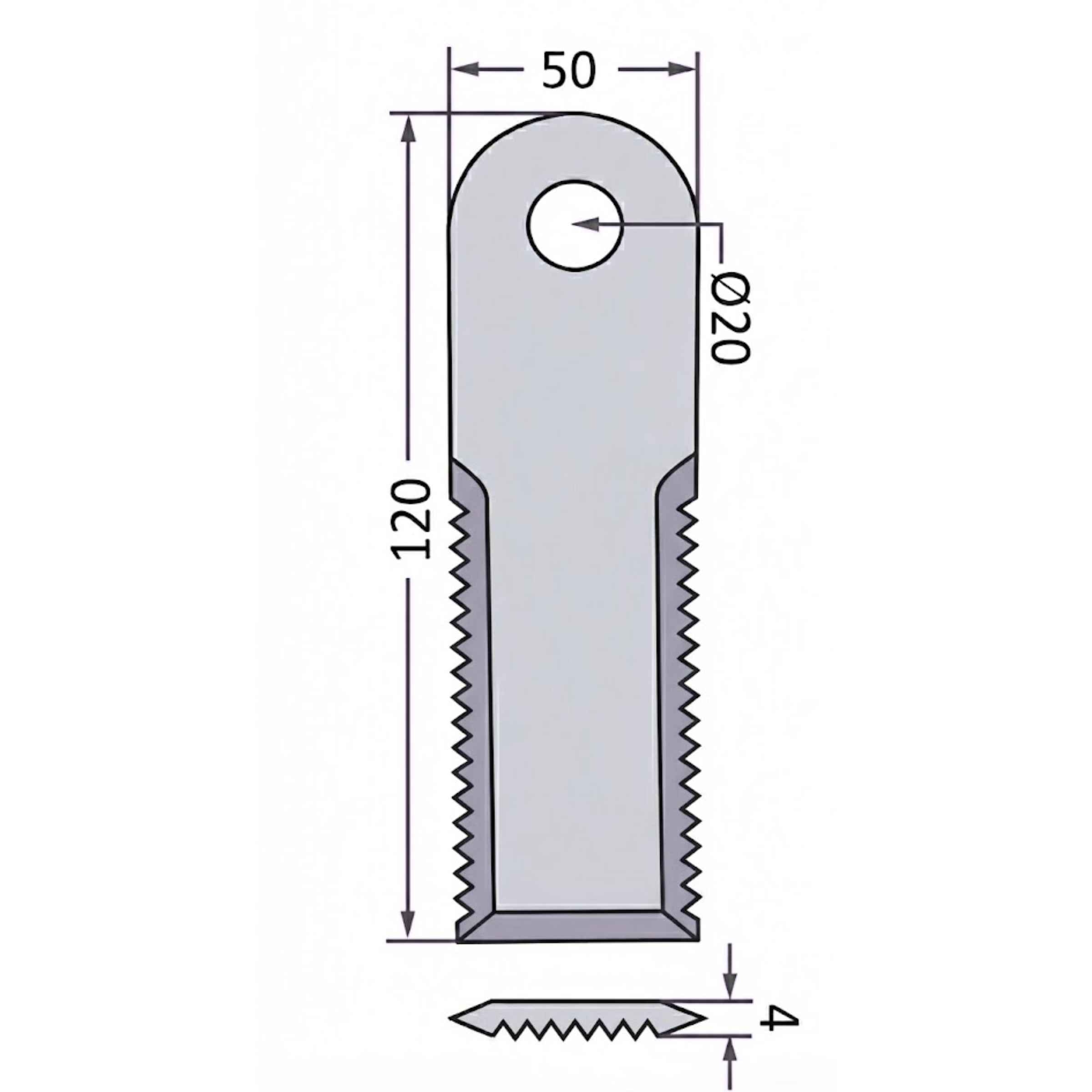 Schlägelmesser gezahnt 120 x 50 x 4 mm – Bohrung 20 mm