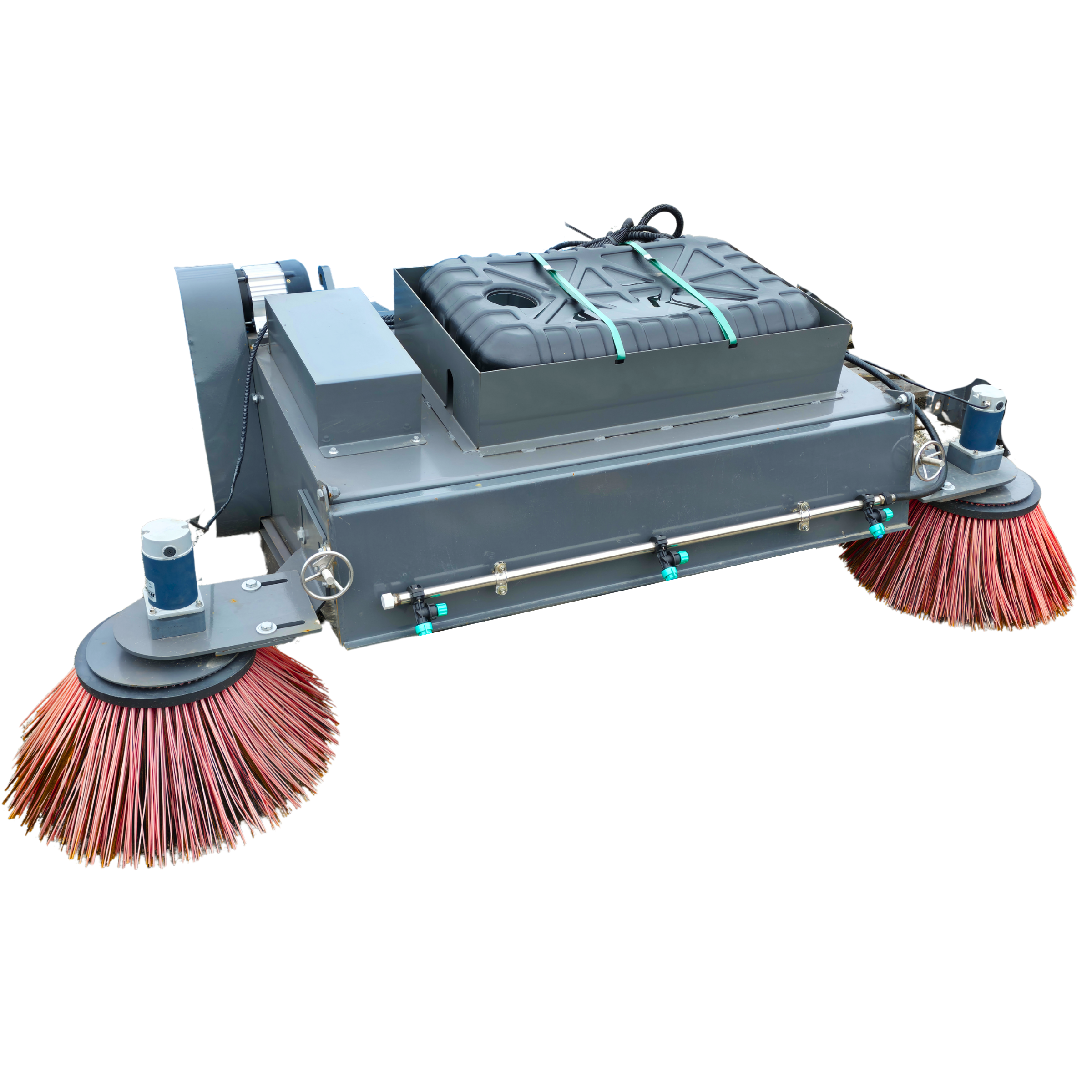 Der hydraulische Antrieb ermöglicht gleichmäßige Bürstenbewegungen und kann einfach an viele Trägerfahrzeuge, Hoflader oder Kommunalfahrzeuge angeschlossen werden. Optional lässt sich ein Wassertank zur Staubbindung integrieren – ideal für staubfreie Reinigung auf Asphalt, Beton oder Pflasterflächen.