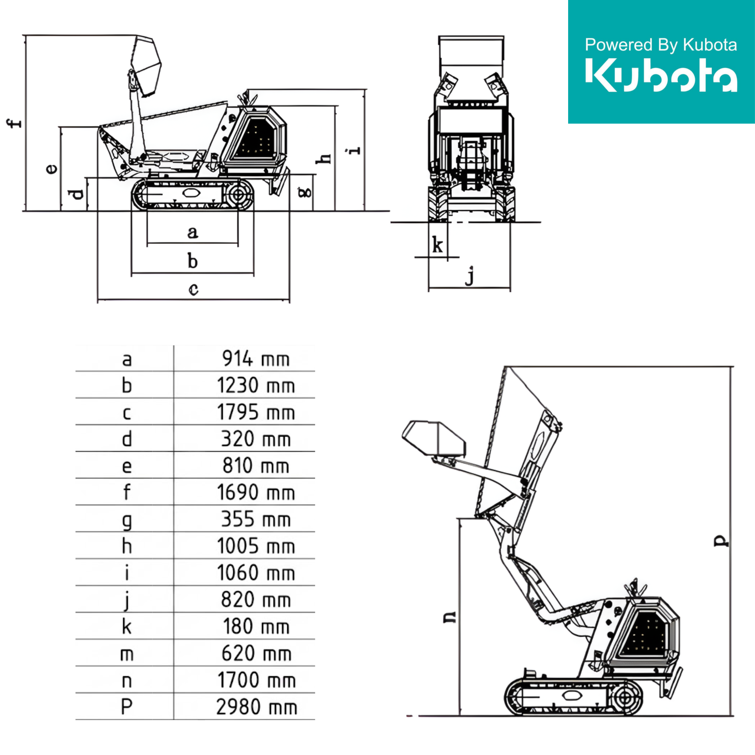 Startseite » Baumaschinen | Strom Generator » Minidumper » Mini Dumper XN800 Profiline mit Raupenantrieb - 14 PS mit Hochentladung | Kubota - Motor