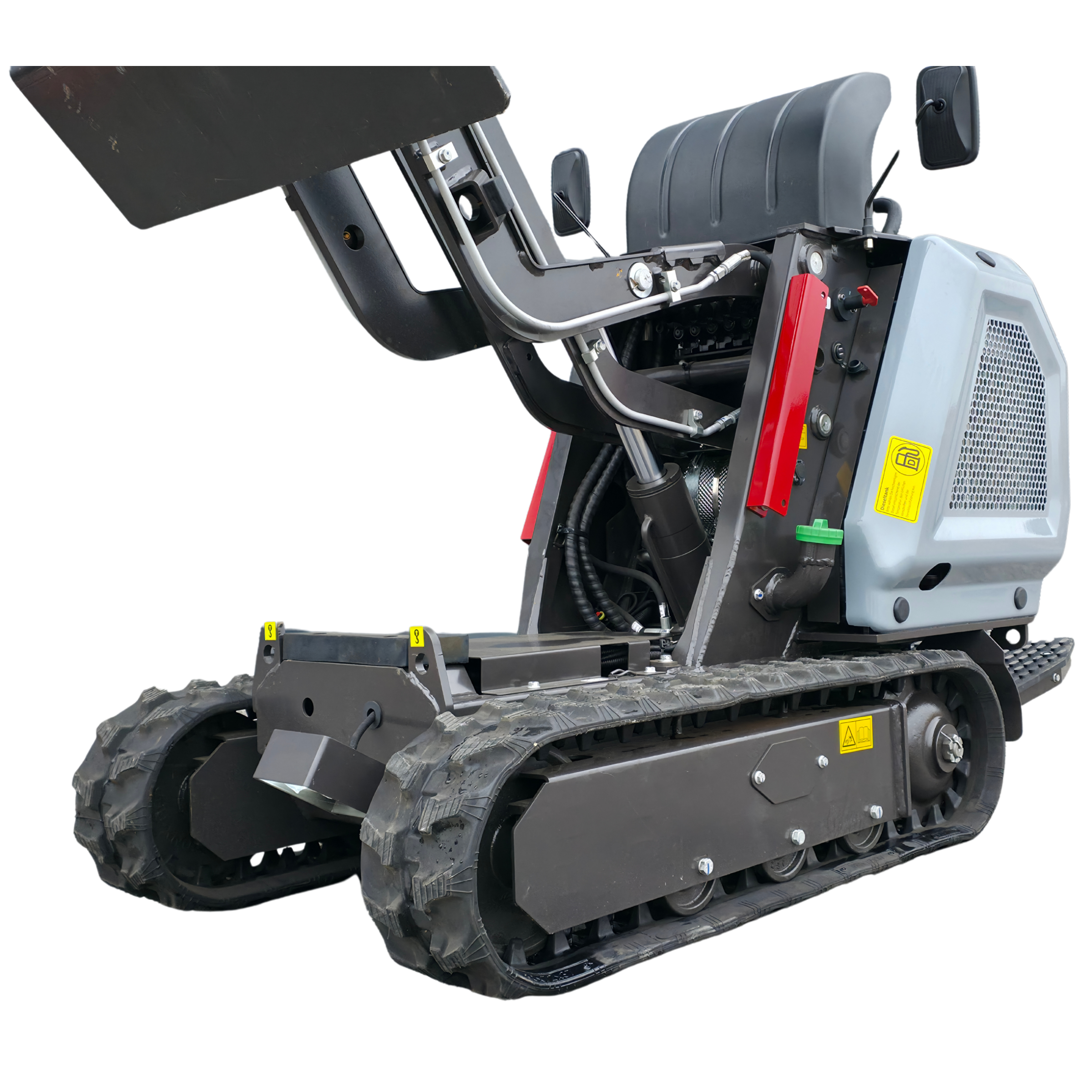 - Geländegängig: Gummierte Raupenketten mit 180 mm Spurweite bieten sicheren Halt und schonen empfindliche Untergründe.