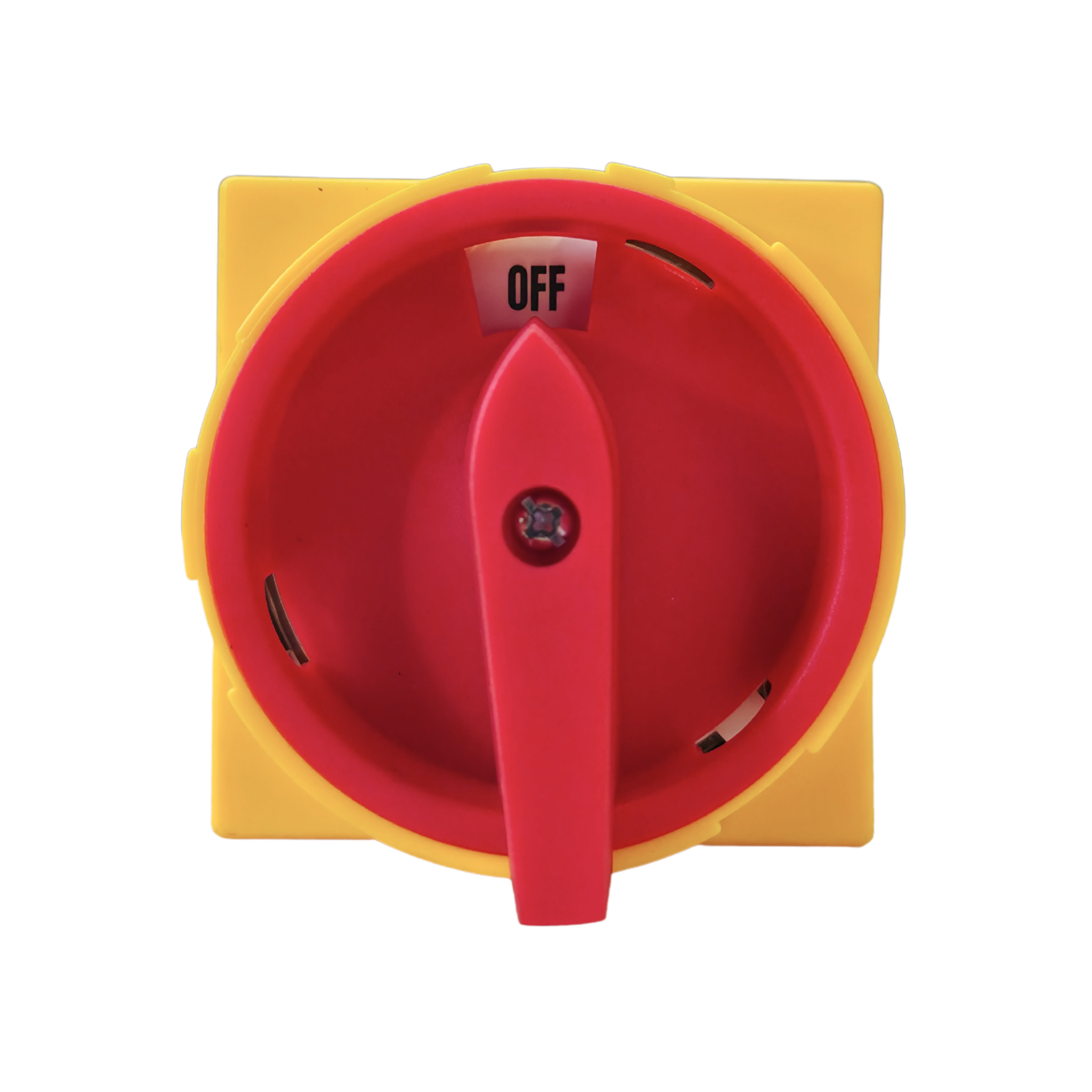 Das Gerät ist für eine Betriebsspannung (Ue) von 500V und eine Isolationsspannung (Ui) von 690V ausgelegt. Der markante rote Drehgriff auf der gelben Frontplatte sorgt für gute Sichtbarkeit und signalisiert die Funktion als Sicherheitsschalter. Die Schaltstellung ist klar mit OFF und ON gekennzeichnet, und der Griff bietet konstruktionsbedingt die Möglichkeit, ihn in der Aus-Position mit einem Vorhängeschloss zu sichern, um ein unbefugtes Wiedereinschalten zu verhindern. Die Anschlüsse sind gut zugänglich und klar beschriftet (L1-L3 Eingang, T1-T3 Ausgang).
