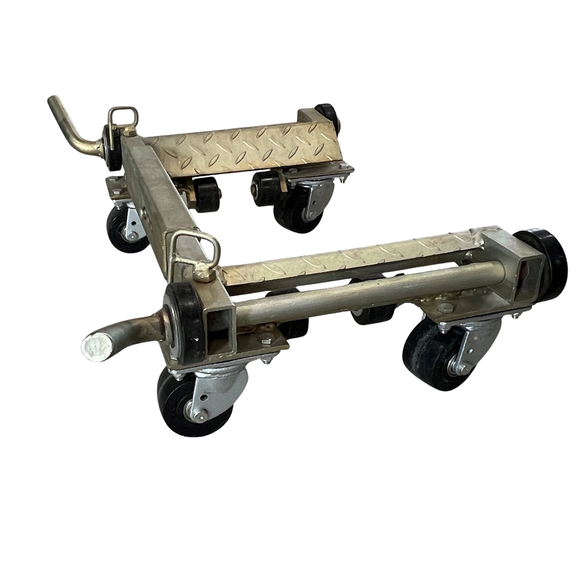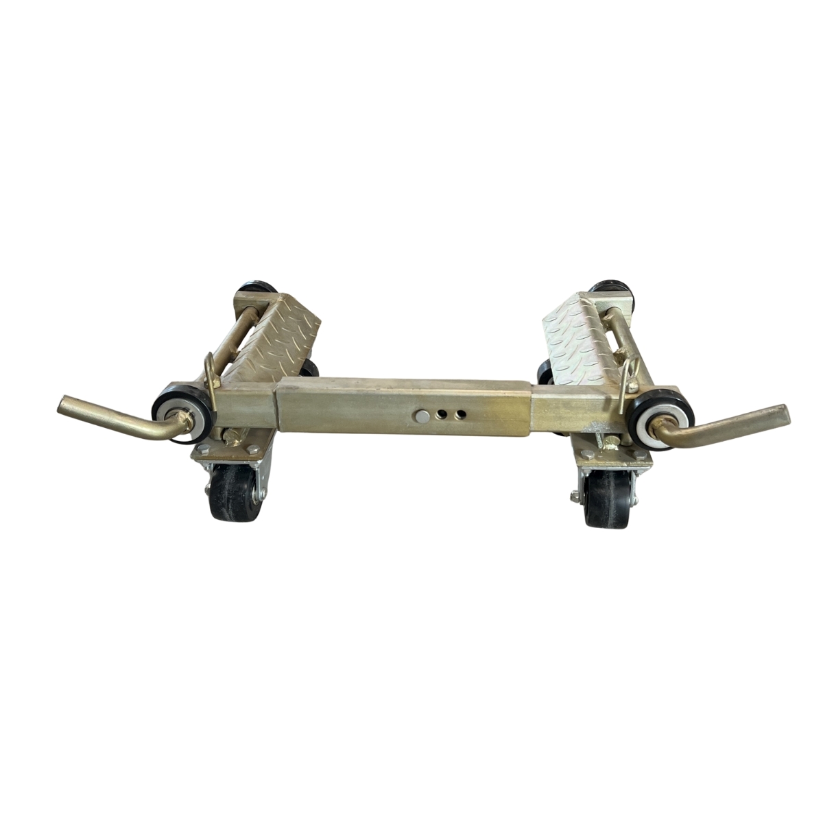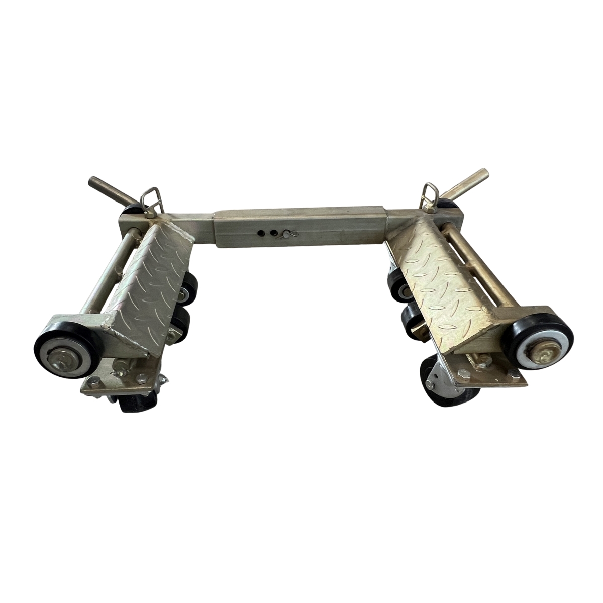 Dank der stabilen Stahlkonstruktion und der integrierten Hebefunktion können Pkw sicher angehoben und mühelos in jede gewünschte Richtung rangiert werden.