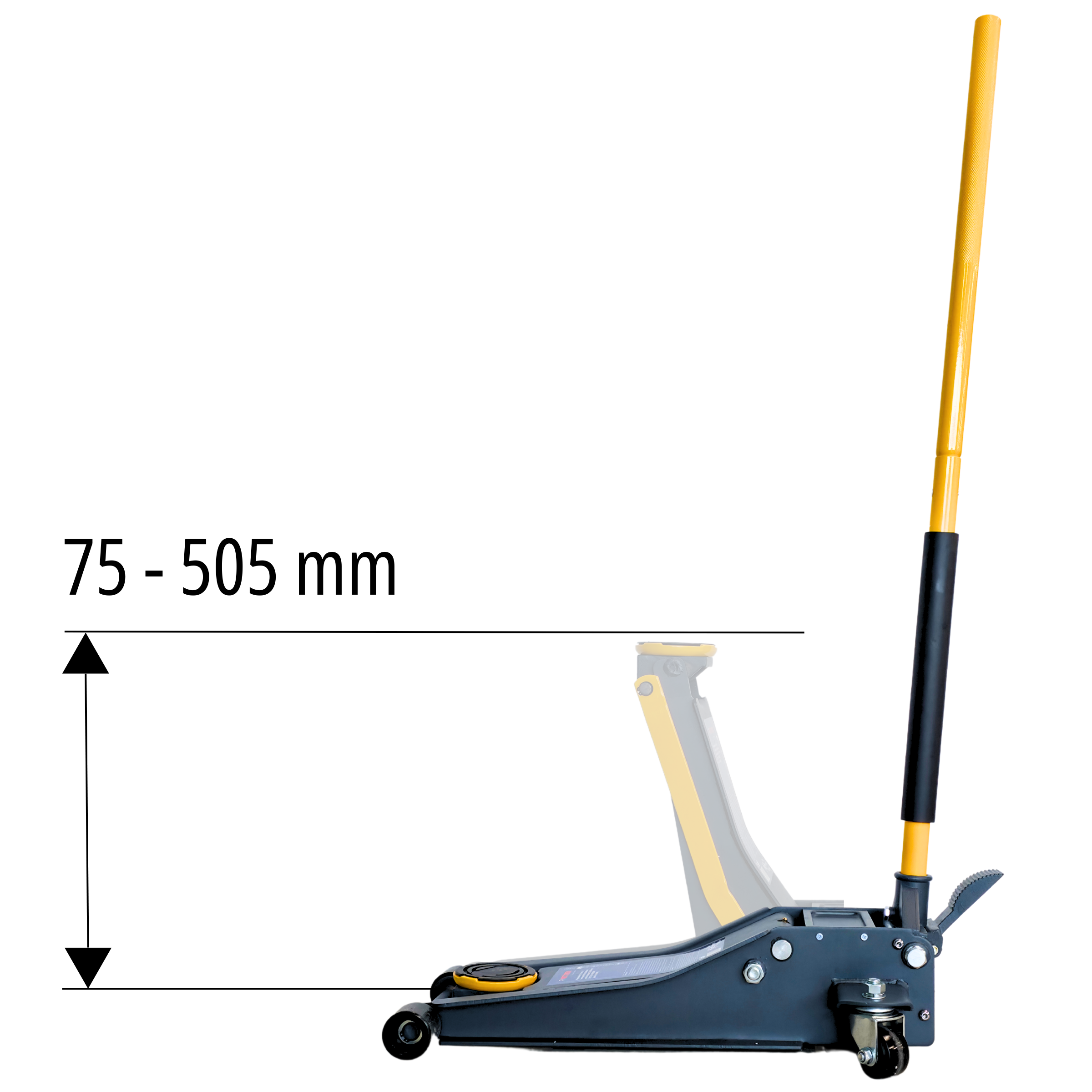 Startseite » Hebetechnik » Rangier - Wagenheber » RETTER RTK3000G Wagenheber 3,0 t – ultraflach 75–505 mm, niedrige Bauhöhe, große Hubhöhe, Profi-Rangierwagenheber für PKW & SUV