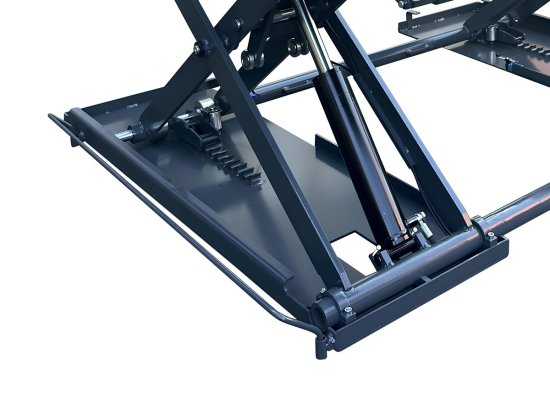 Dank der niedrigen Überfahrhöhe (110 mm) und der feststellbaren Auffahrrampen eignet sich die Hebebühne für Fahrzeuge vom Kleinwagen bis zum Transporter. Die absolute Türfreiheit, da keine störenden Säulen vorhanden sind, sorgt für perfekte Zugänglichkeit zu Türen, Schwellern und Seitenteilen.