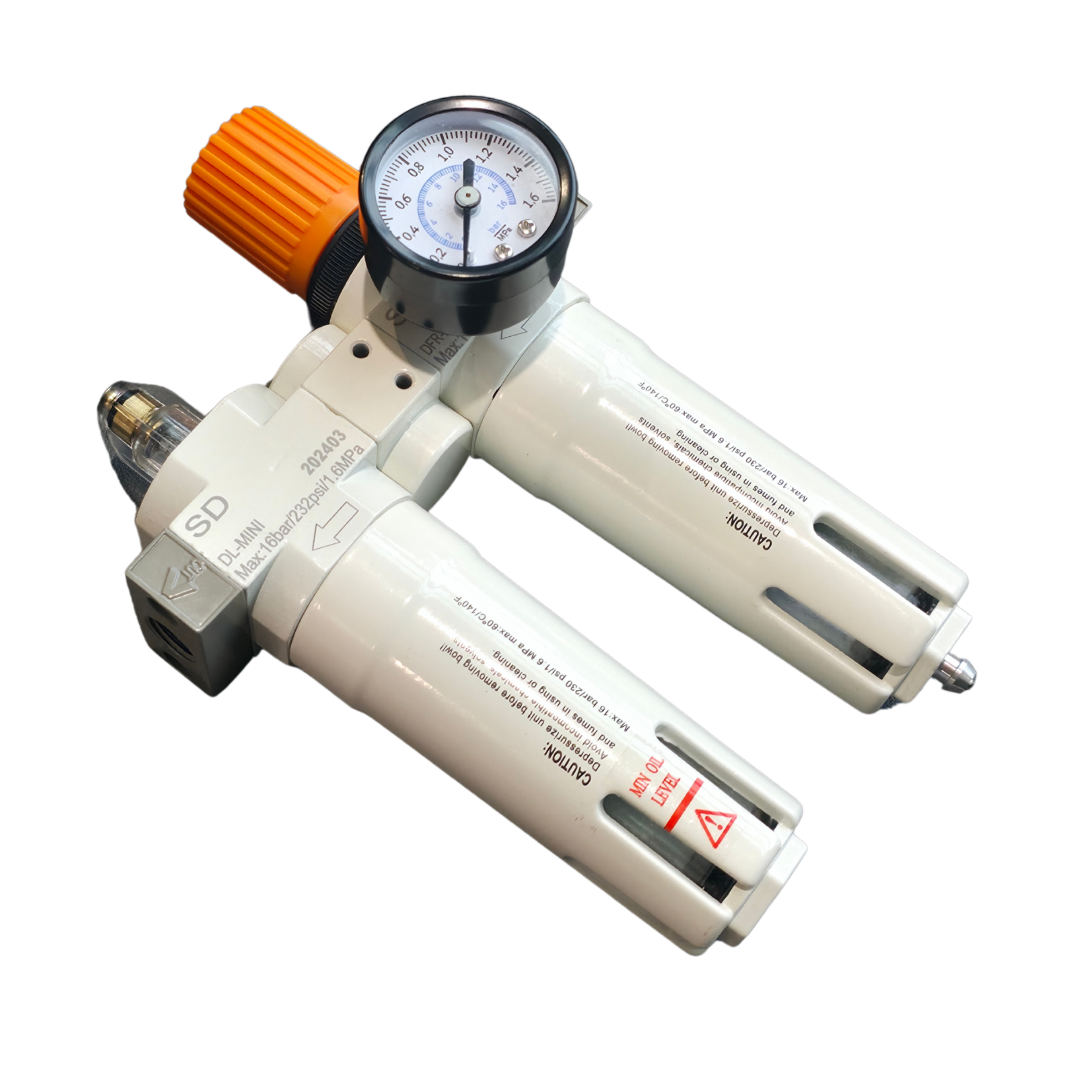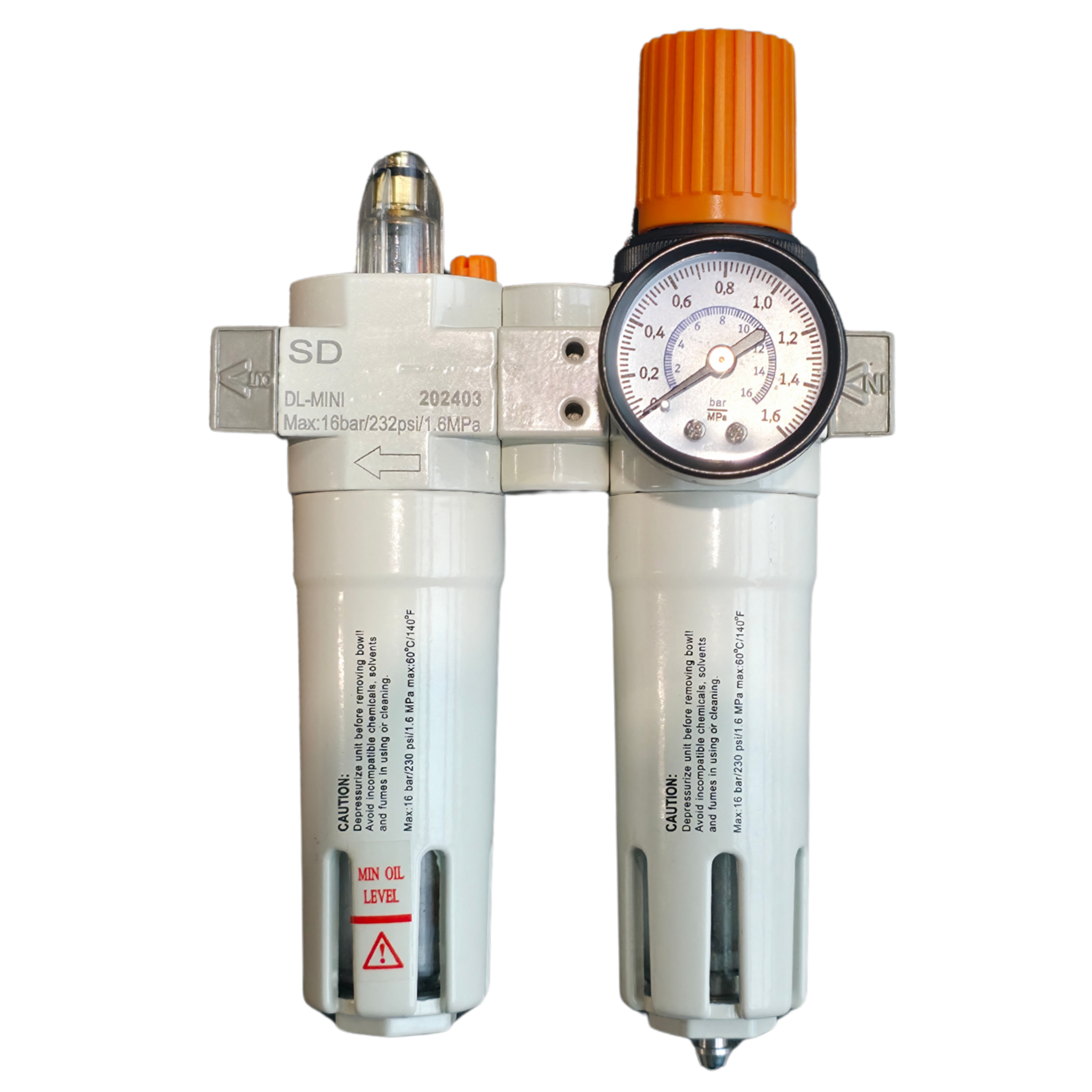 - 2-in-1-Funktion: Kombinierte Druckluftfilter und -regler (Filter-Regler) zur effektiven Reinigung und präzisen Druckeinstellung.