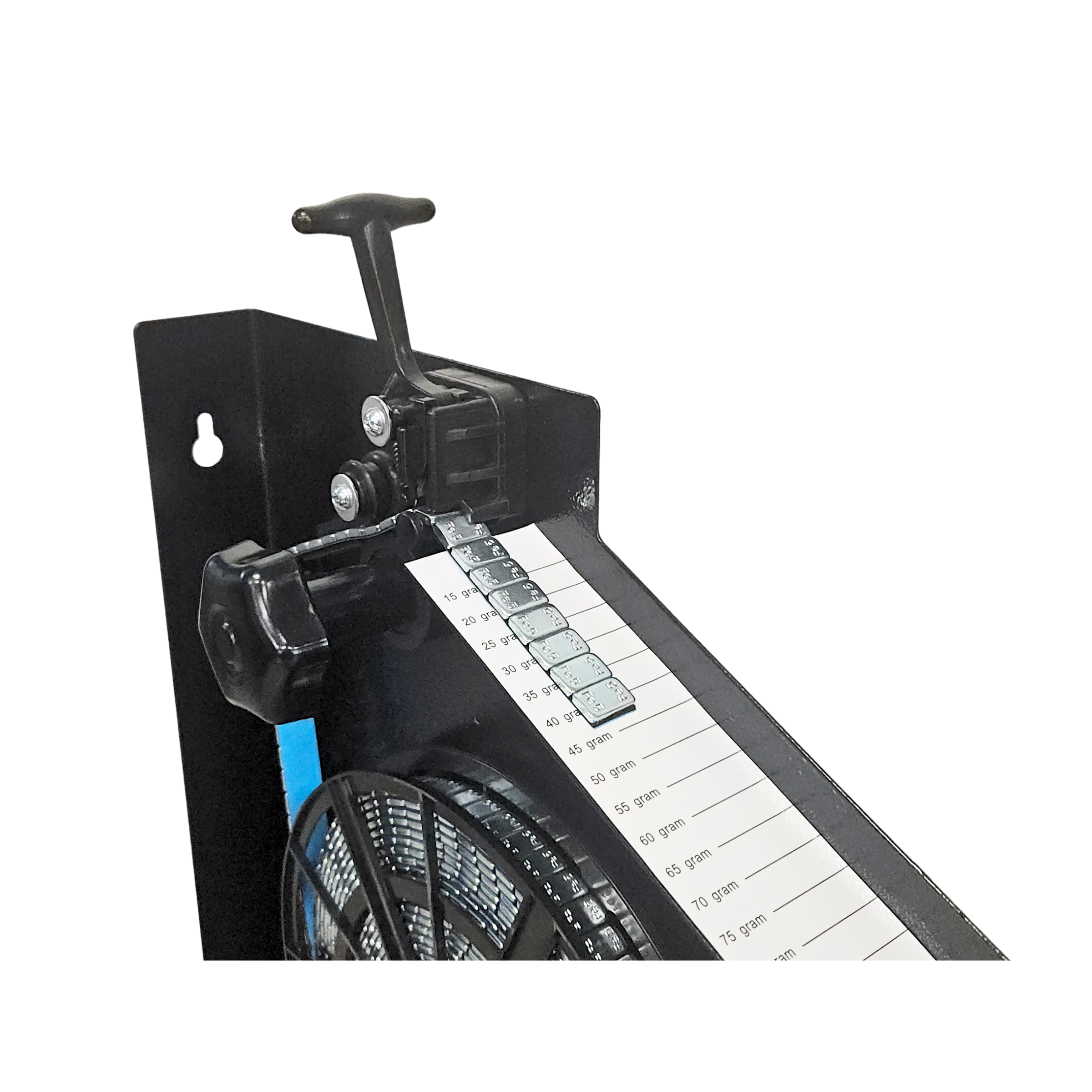 Dieses professionelle Abroll- und Schneidegerät für Klebegewichte sorgt für effizientes Arbeiten in der Werkstatt. Der robuste Halter aus pulverbeschichtetem Stahl ermöglicht eine sichere Aufnahme von 5–6 kg Rollen und garantiert eine saubere, gleichmäßige Abwicklung. Dank des integrierten Rastmechanismus wird die gewünschte Länge präzise dosiert – das Rasten ist spürbar, was die Bedienung intuitiv und schnell macht. Die Schneidvorrichtung trennt ausschließlich das Klebeband, wodurch die Schneidklinge geschont wird und lange scharf bleibt. Mit Bohrungen für Wand- oder Tischmontage bietet der Halter maximale Flexibilität im Einsatzbereich.