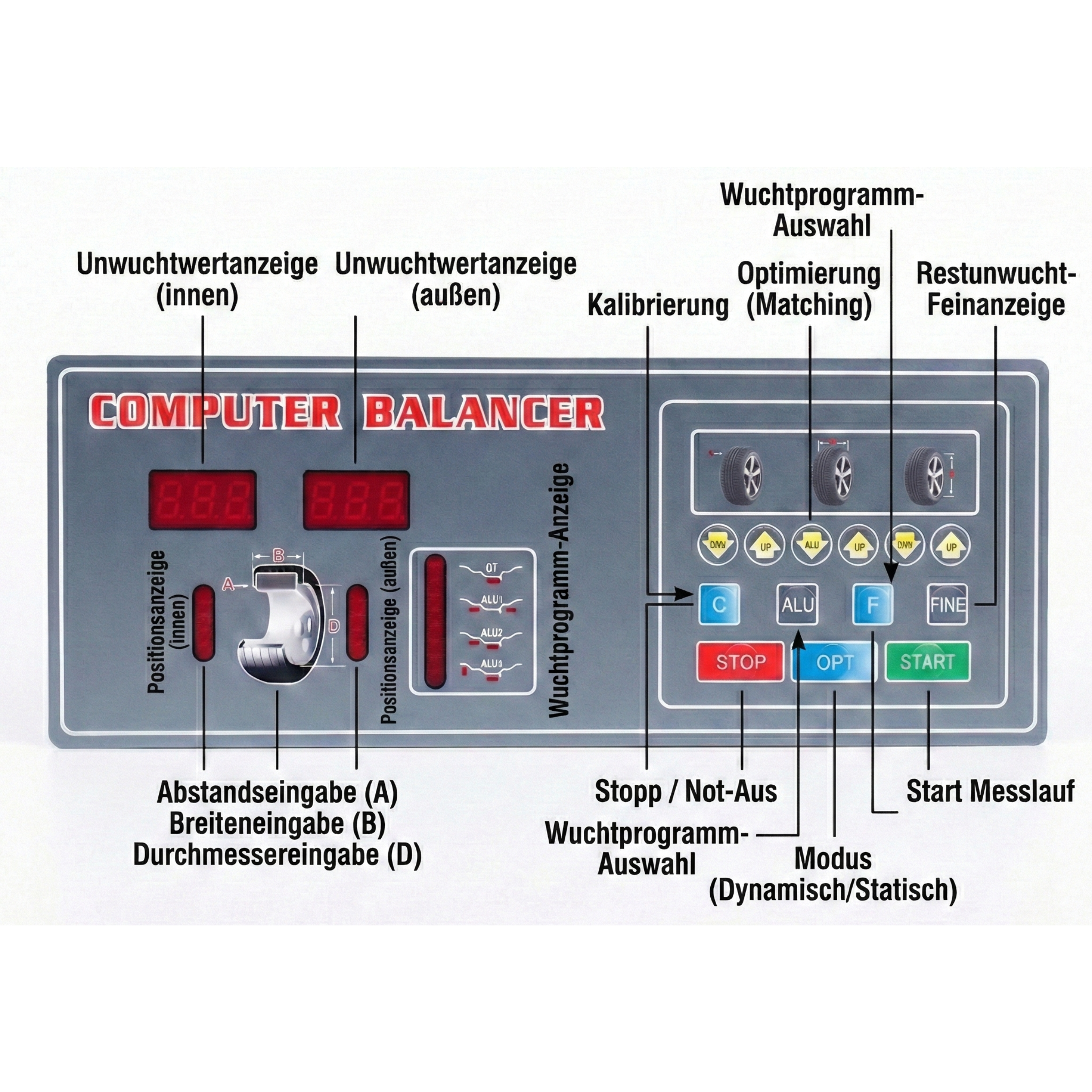 - Ermöglicht sichere und präzise Bedienung der Wuchtmaschine