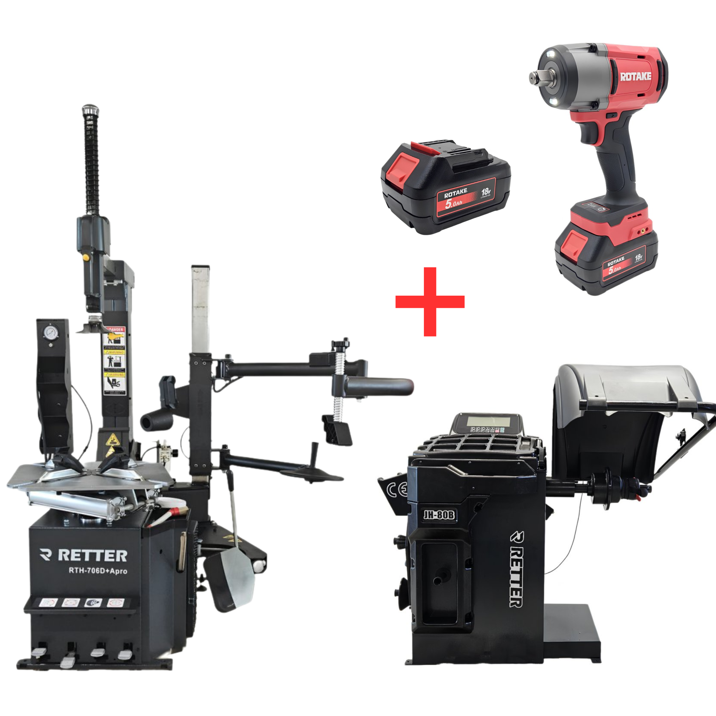 Startseite » Reifen | Montage » RETTER Reifenservice-SET JH-80B + RT-706D + 18V Schlagschrauber | Reifenmontier- & Wuchtmaschinen-Set mit Akku-Schlagschrauber 1180 Nm