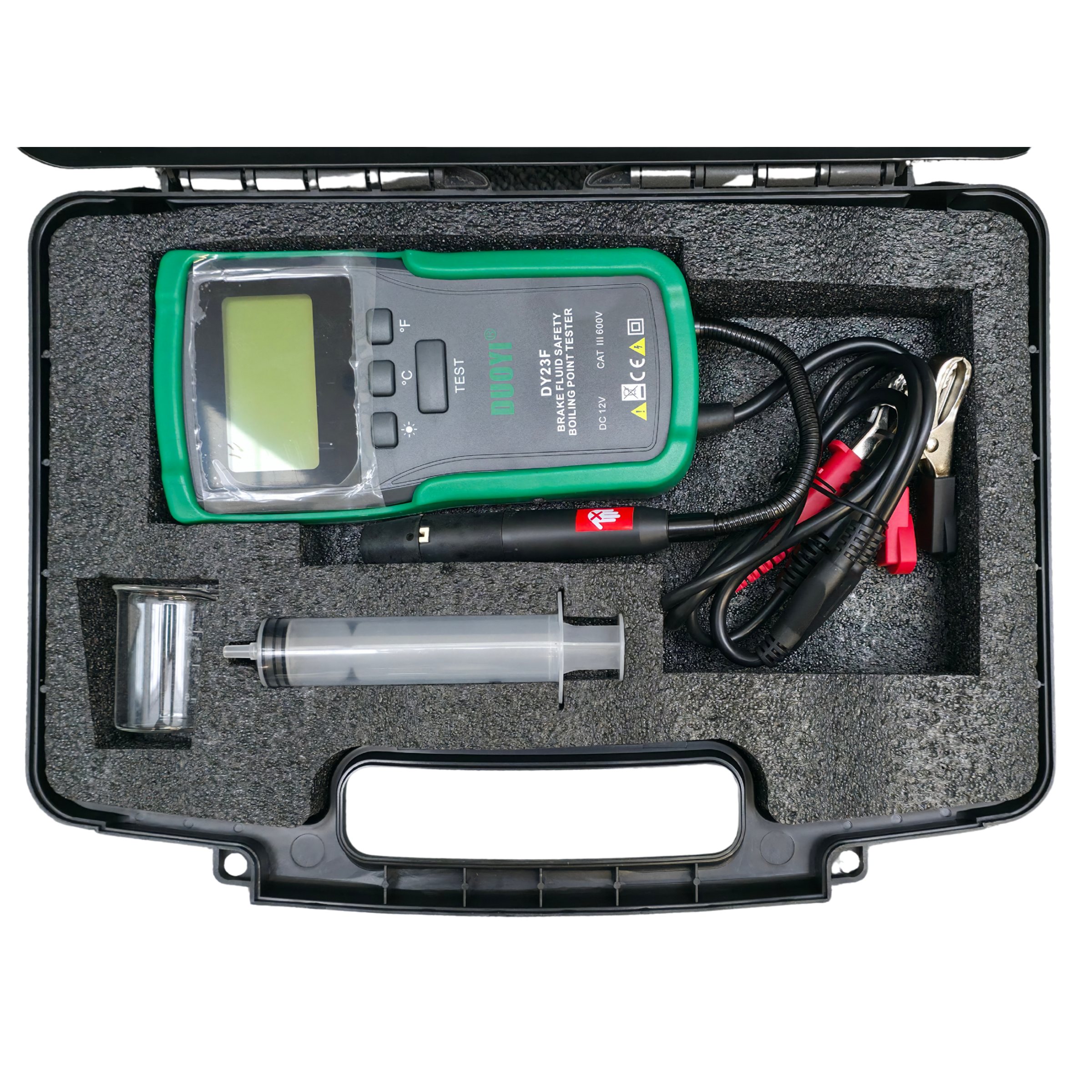 Startseite » Handwerkzeug » KFZ Spezialwerkzeug » DY23F Digitaler Bremsflüssigkeits-Siedepunkt-Tester (12V) – Für DOT3, DOT4, DOT5, DOT5.1 & Super DOT4