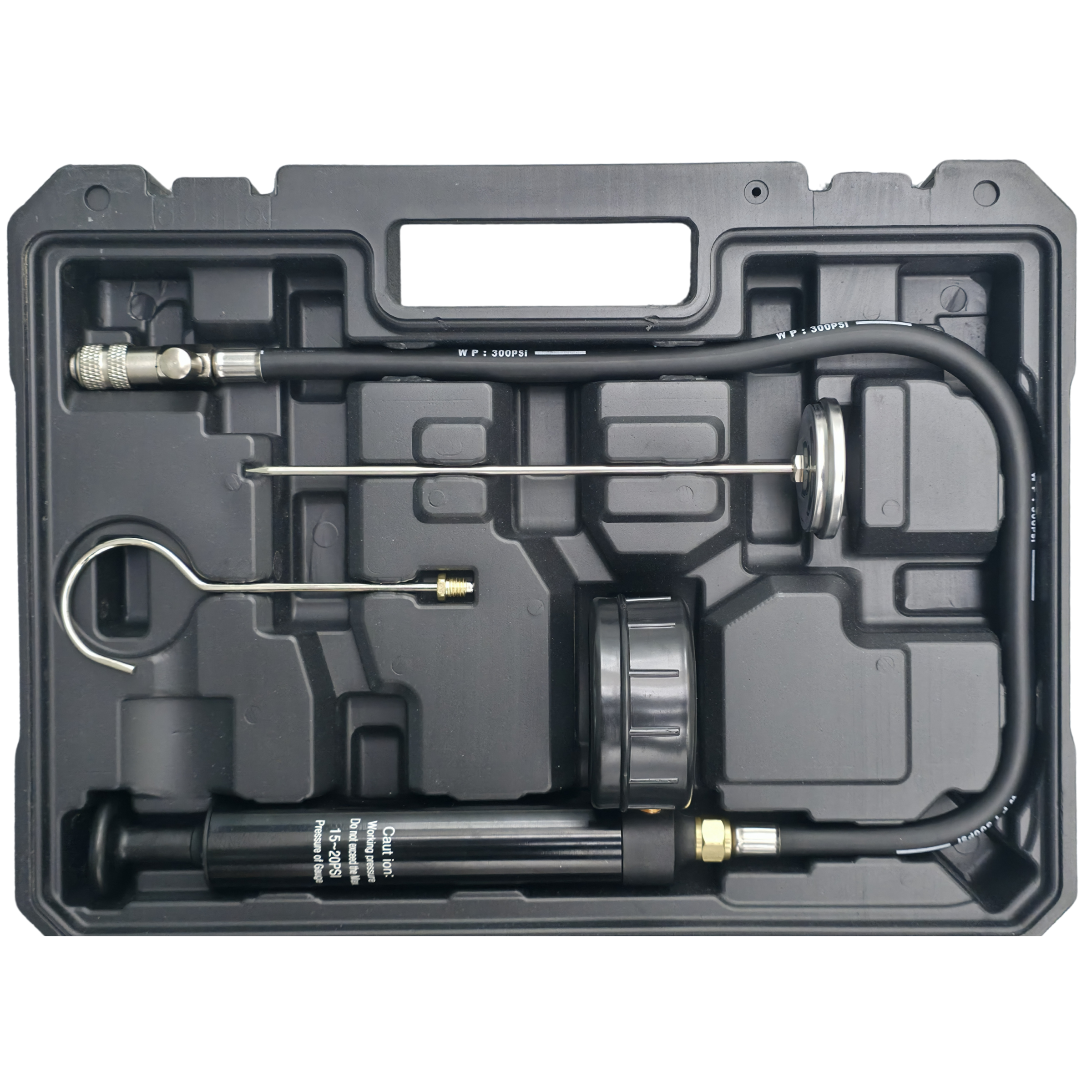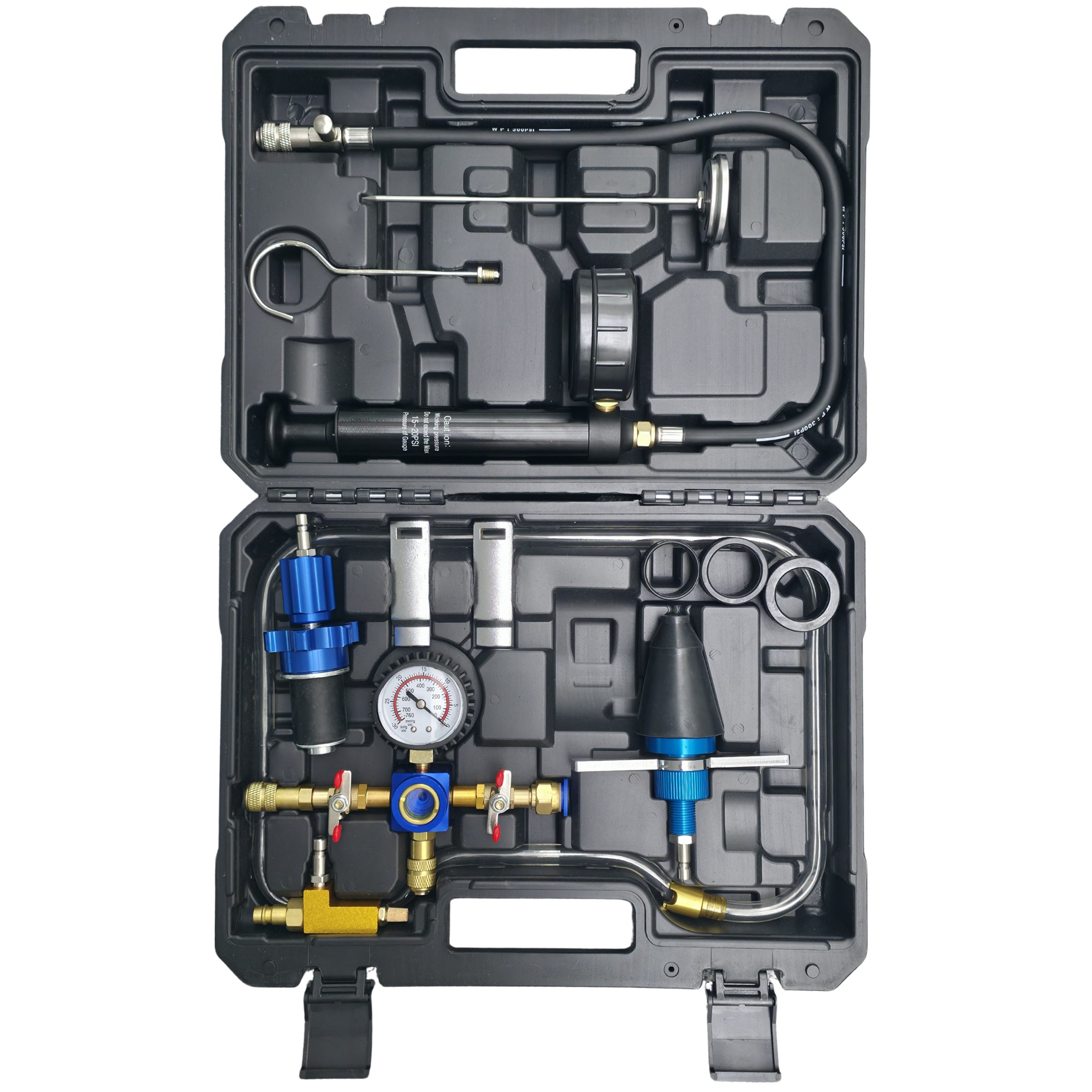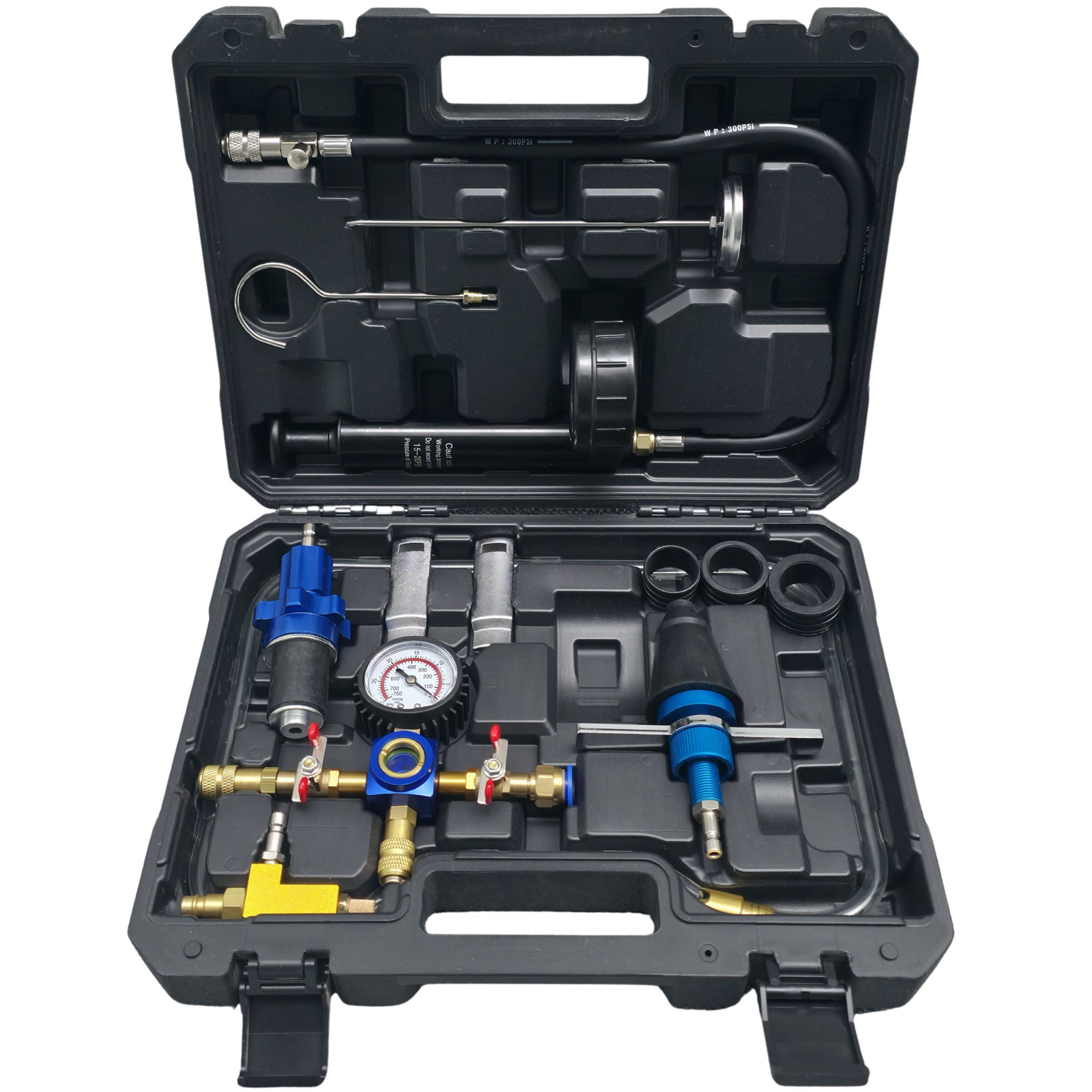 Geliefert wird das Set in einem stabilen Koffer, der alle Komponenten übersichtlich aufbewahrt und einen einfachen Transport ermöglicht. Ideal für den Einsatz in Werkstätten, im Kfz-Service oder bei Wartungsarbeiten.