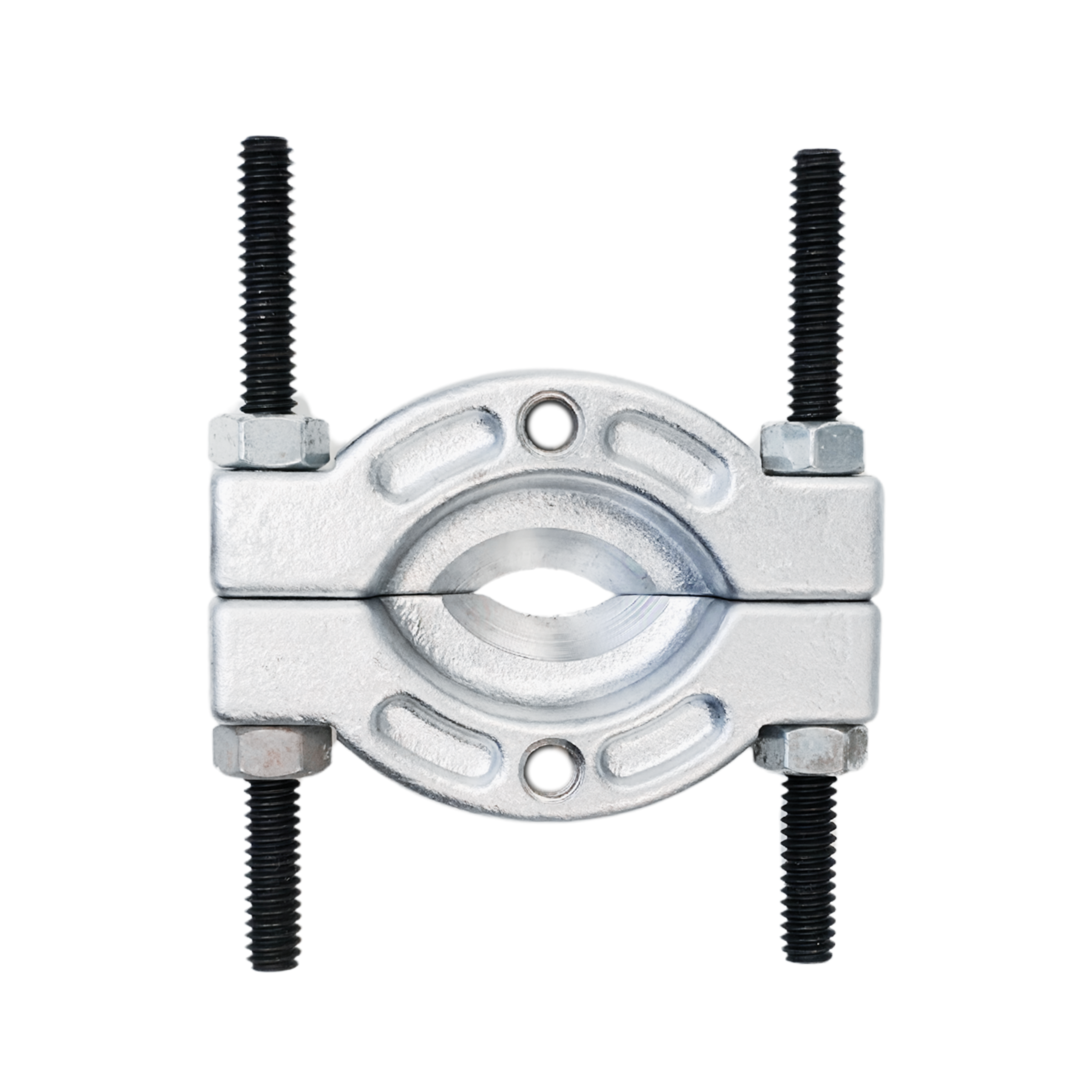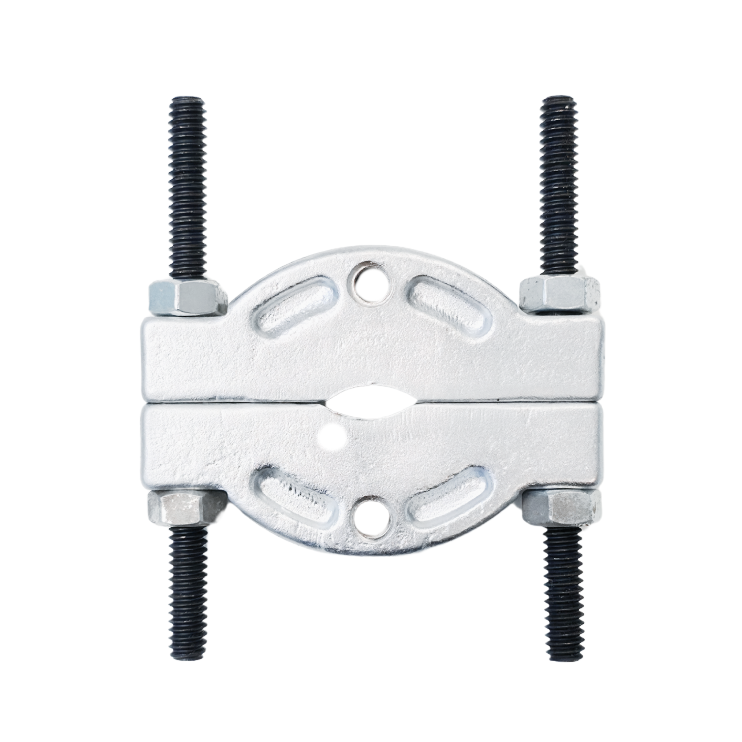 Die Materialqualität steht bei diesem Lagerabzieher im Fokus. Er besteht aus 40CR Stahl, einer Chrom-Legierung, die durch eine spezielle Wärmebehandlung gehärtet wurde. Zusätzlich ist das Werkzeug gesenkgeschmiedet, was eine höhere Gefügedichte und damit eine deutlich bessere Belastbarkeit gegenüber gegossenen Alternativen gewährleistet. Die keilförmigen Kanten der beiden Hälften werden mittels der seitlichen Gewindebolzen unter das abzuziehende Bauteil gepresst. Dies ermöglicht das Lösen von Teilen an Stellen, an denen herkömmliche Abziehklauen aufgrund von Platzmangel nicht angesetzt werden können. Die robuste Bauweise sorgt für eine lange Lebensdauer und Prozesssicherheit bei Wartungs- und Reparaturarbeiten.