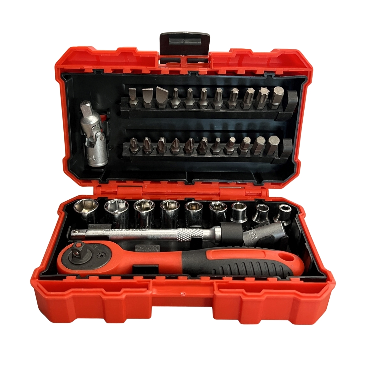 Der RETTER 35-teilige 1/4" Ratschen- und Steckschlüsselsatz ist der perfekte Begleiter für Werkstatt, Auto-Reparaturen und Hobby-Schrauber.