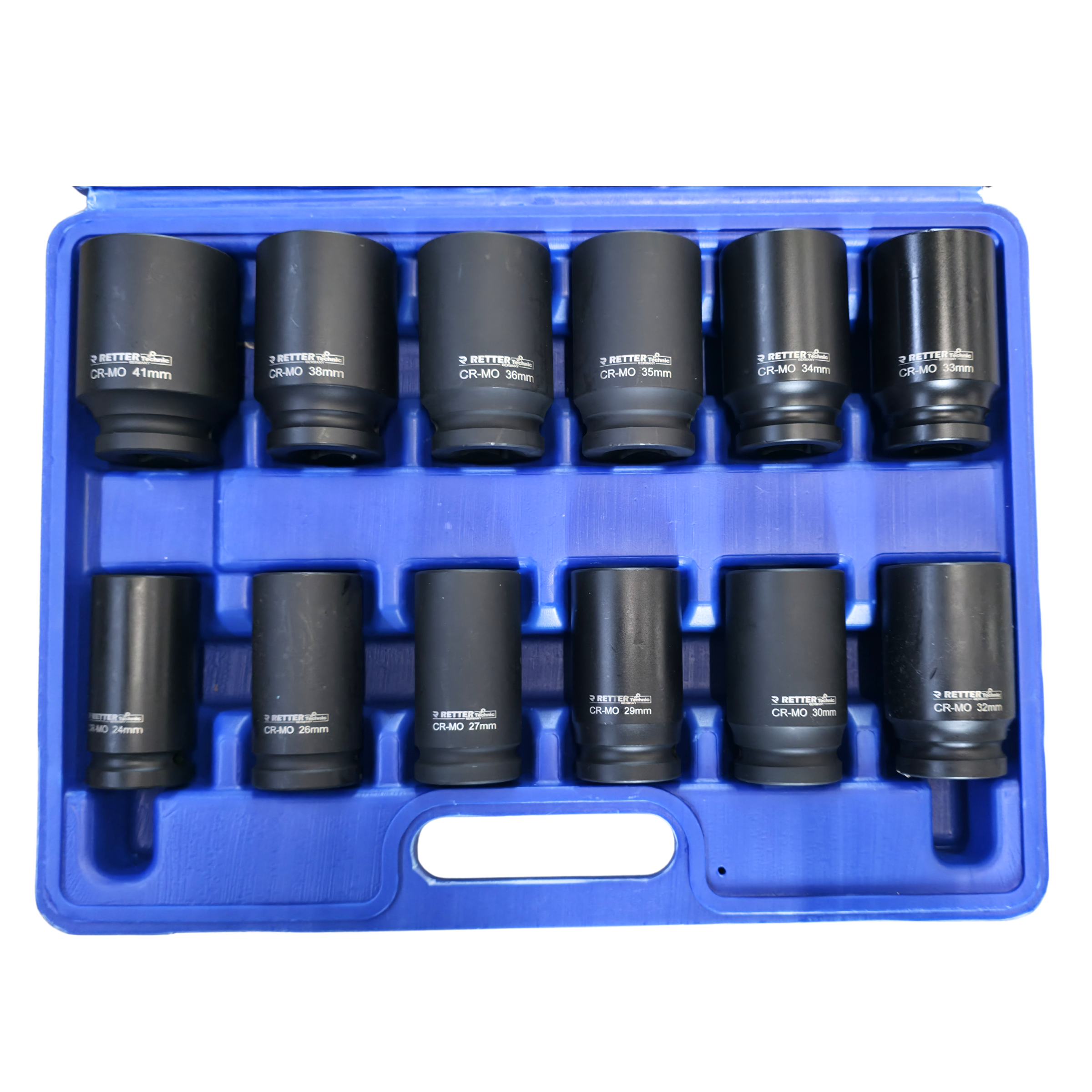 Startseite » Handwerkzeug » Schraubenschlüssel und Stecknüsse » RETTER Schlagschrauber Nüsse Set 3/4 Zoll 24-41 mm 12-tlg. metrisch