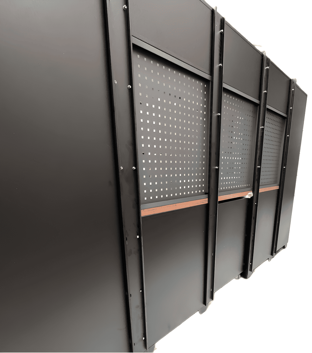 Das RETTER Schranksystem RTX1100 überzeugt durch eine stabile Konstruktion und durchdachtes Design. Mit einer Breite von 3240 mm, Tiefe von 500 mm und einer Höhe von 2040 mm bietet das 11-teilige Set reichlich Stauraum für Werkzeuge, Maschinen und Zubehör.