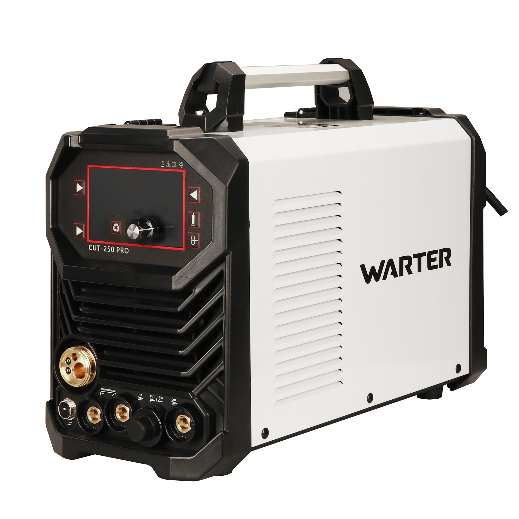 Startseite » Werkstatteinrichtung » MIG/MAG Schutzgas-Schweißgeräte » WARTER CUT-250 PRO Kompaktes 4-in-1 Multifunktions-Invertergerät für WIG, MIG/MAG, MMA & Plasma CUT 200A und 50A Kombigerät mit Plasma-Funktion